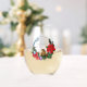 A cute brown mouse on a Chritsmas wreath. Ornaments, red bow, poinsettias and blue celtic into work on a Christmas wreath