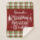 Personalize this festive blanket with the name of your choice! It says, "Christmas movie watching blanket" with the name you pick just above it. It's a very Christmasy red with a red and green plaid design on the top and bottom.