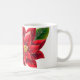 This ceramic coffee mug is shown with a festive holiday red poinsettia print.