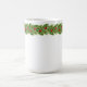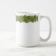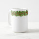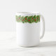 Christmas holiday ceramic coffee mug is shown with a festive holiday fir garland with holly and red berries print.