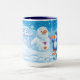 Christmas coffee mug, PingPing Penguin & Snowman. From an original picture book illustration featuring Ping Ping the little penguin.