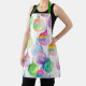 Here is a unique, festive all-over print apron with pretty watercolor Christmas ball ornaments hanging from strings at different levels; pink, yellow, blue, and green, in various tones and shades, creating a shiny, reflective look, all on a white background. Decorate yourself in something a little different from red and green this year.