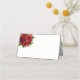 This folded name place card is shown in basic white with a festive Christmas red roses graphic print.
