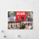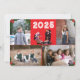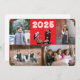 Design front features room for four photos against a bright red background. Top centre image is of a Christmas Nativity set. The year is displayed across the top in a bold white font. Design is trimmed with the image of holly at corners.