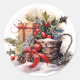 Christmas Natural Holly Berries Pinecones Red Bow Classic Round Sticker