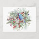 Christmas Nature Illustration with Bird & Berries Holiday Postcard