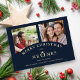 Christmas Navy Chic Luxury Golden Effect 2 Photos Wedding Save the date with Envelope.
