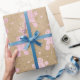 Christmas New Year Pink Gold Gingerbread Man Kraft Wrapping Paper