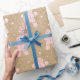 Christmas New Year Rose Pink Gingerbread Man Kraft Wrapping Paper