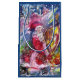 Colourful, whimsical and artistic acrylic painting ,Santa is playing harp in the moonlight ,an owl ,floral ornaments,winter plants,children toys,holly berries in bright red,green,white,blue,yellow colours. by Bulgan Lumini (c)