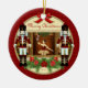 A beautiful Christmas Nutcracker Merry Christmas art keepsake ornament! This lovely round double sided ornament is a wonderful addition to your Christmas decor and ornament collection! It features two large nutcrackers on each side of the ornament and a dancing holiday ballerina art in the centre, also green garland with red and gold ornaments and a poinsettia flower on the bottom. The ornament is accented with a red and gold trimmings and a digital art bow on top. The frame area of the ornament is a festive red snowflake pattern. A wonderful holiday addition to your collection, or a gift for a friend, or family member will treasure! For more holiday ornaments, home decor, and keepsakes please visit our shop!