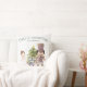 This Christmas holiday throw pillow features a cute nutcracker theme. An illustrated image features a Christmas tree, nutcracker toy soldier, Mouse King, and a little Sugar Plum Fairy. A "merry Christmas" greeting is printed across the top, followed by a sample family name. You can personalize the pillow to include your own custom name or text.