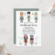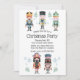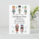 This Christmas party invitation features a simple, classic toy soldier nutcracker theme. Five different vintage style nutcrackers are printed in a watercolor painting design, and accented with winter branches and snowflakes. Three are printed along the top, and two at the bottom.