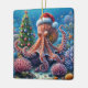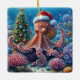 Christmas Octopus Wearing a Santa Hat Ceramic Ornament