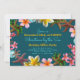 Modèle d'invitation du bureau de vacances avec thème plage. Bleu foncé avec aqua et lignes dorées de texte bordé d'étoiles de mer et de fleurs de plumeria, cette invitation est facile à personnaliser pour votre événement. Fait comme un invitation de bureau, avec place pour le thème de la fête. Exemple de texte : "Noël au bord de la mer" ou "Luau des Fêtes", ou toute formulation qui convient à l'espace. Les fleurs de plumeria rose et jaune se mêlent aux étoiles de mer marron, aux ornements arborés et aux feuilles saints dans ce design saisonnier unique. Reverse est solide bleu aqua. Ne choisissez pas d’enveloppes si vous souhaitez les distribuer au travail.