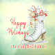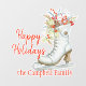 Charming  Holiday window cling customizable for home or business use, features watercolor illustration of vintage style ice skating shoe filled with Christmas foliage