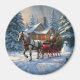 Santa driving a one-horse sleigh to deliver Christmas presents in a small town
