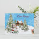 Christmas Open House Party Invitation with Country House, Santa and Mrs. Claus. Let Santa and Mrs. Claus, standing in front of their home on the beautiful snow, invite your guests to an Open House.