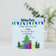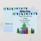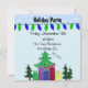 A delightful invitation to send out for a holiday or Christmas Party. Christmas trees surrounded with gifts and little birdies singing above. A string of green and blue lights accents the top of the invitation. Customize with all of your own party information as desired.