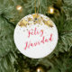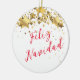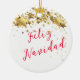 This Christmas ceramic ornament is shown with a holiday Feliz Navidad stars print.