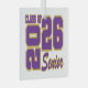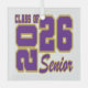 This glass ornament is shown in a square size with a fun print which you can personalize to your class colours. Shown in white, royal purple and gold. Customize this item with this template or buy as shown.