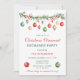 Festive Christmas invitation featuring a holiday garland and ornament baubles. Perfect for a Christmas ornament exchange party. The words can be changed to suit your own details or requirements
