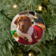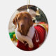 Round Christmas ornament featuring Holly the Hungarian Vizsla.