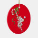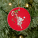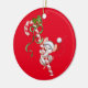 Christmas Ornament shown in a round shape with a red background with a cute holiday santa mouse print.