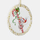 Christmas Ornament shown in a round shape with a white background with a cute holiday santa mouse print, the back side has a red colour.