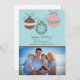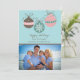 Share your holiday greetings with this cute three whimsical ornaments on a blue background holiday flat card with photo.