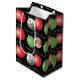 This Christmas gift bag features two traditional round Christmas ornaments, one red and one green in a pattern on a black background and the words Merry Christmas. Six of the ornaments...three on the front and three on the back... are a customizable photo frames, allowing you to add your favourite family photos.