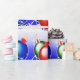 This image portrays Christmas balls in red, blue and green. Ribbons and stars in white, blue and red are seen throughout. A blue backround was added. A glitter was added to this design. This image was tiled. This Christmas wrapping paper is available in assorted styles and sizes.