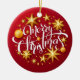 Beautiful Christmas round Ornament featuring golden sparkling stars, Christmas ornaments and Merry Christmas written in white typography on red background give it a festive look. Perfect holiday gift for family or friends.