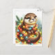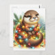 An adorable otter wrapped in Christmas lights watercolor AI generated art