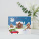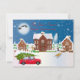 A bright and cheery Christmas Party Invitation with an outdoor scene of a house and car and tree indicating a fun party atmosphere.