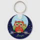 The design on this keychain shows a cute owl in Christmas colours against a dark blue sky with snow dots, snowflakes, stars and a big full moon. The name on this product is a template object and can be changed into the desired one / text easily.