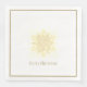 These standard style napkins are shown in the dinner size. Shown with a single, bold golden-colour snowflake in the centre on a white background, a thin golden-colour border with white outer border edges, and text reading Merry Christmas.