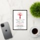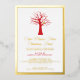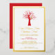 Simple red bare winter tree with a golden coloured partridge bird holiday Christmas graphic invitation. Customize with your own event. Graphic art and design by Sarah Trett for www.mylittleeden.com