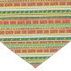 A unique graphic repeat patterned partridges, mistletoe and hearts festive art table runner in green, red, sky blue, white and cream tones. Art and pattern design by Sarah Trett.
