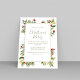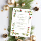 This design features a Christmas party invitation, with a festive, watercolor, elegant, greenery foliage, with red holly berries, and pine branches, a botanical style with a calligraphy script, a classic style.