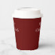 Festive Christmas party snowflake paper cup on a red background. With white typography lettering, you can customize with your own text. Great for your Christmas dinner or holiday party.