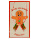 This awesome gift bag features a cute cartoon of a colourful gingerbread man. he has red and green buttons, a big smile on his face and red and green tassels around his legs ready for a Christmas party. There is customizable text on the front so you can personalize this bag however you want.