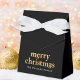 This is a stylish black and gold party favour box in modern minimal black with Merry Christmas in a bold and elegant gold typography.