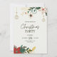 Modern Christmas dinner party invitation card featuring watercolor illustration of winter botanicals - oranges, mistletoe, pine tree branch, et.c