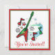 This party invite features a Christmas rock guitar. For matching items type "penguincornerstore rock" into the Zazzle search bar.