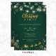 Elegant Christmas party invitation featuring gold and white snowflakes, string lights, and Santa on his sleigh. Perfect for festive holiday gatherings. Customize easily with your party information.