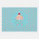 This awesome gift wrap set features a sparkly jellyfish lit up like Christmas lights. The top of the bell is glittery and the underside looks like flashing lights, even the tentacles are bright and colourful. The Jellyfish is wearing a red and white Santa hat and is ready for a jelly Christmas.