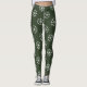 Funny Ugly Christmas leggings with snowflake pattern. Fun Holiday pattern design pants. Cute clothing for women and girls. Personalizable tights with custom background colour iedark green. Make your own custom printed pants for the Holiday season. Humourous costume outfit idea for Santa's little helper or elf. Match with your favourite ugly x-mas sweater.