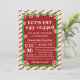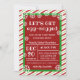 This modern funny Christmas party invitation features a festive classic Christmas red and green striped border. This festive pattern is also displayed on the back of the invitation. It is adorned with winter white snowflakes. The front of the card expresses excitement with the funny statement "Let's get egg-nogged". Great for adult Christmas parties.