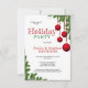 CHRISTMAS PARTY Red Green Ornament Pine Snow Invitation